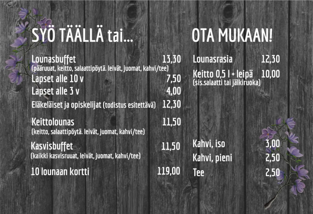 Noudettaessa joka 11. ateria maksutta leimakortilla kahvilasta.
