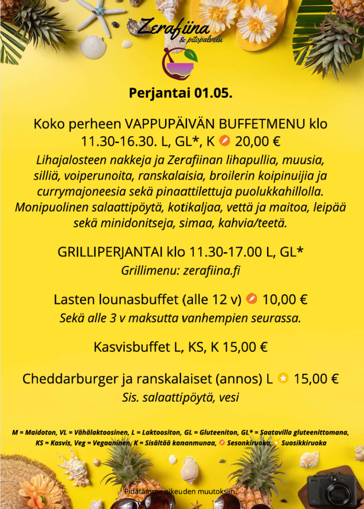 Lounas tarjolla arkisin klo 10.30-13.30 GRILLIPERJANTAI klo 10.30-17.00